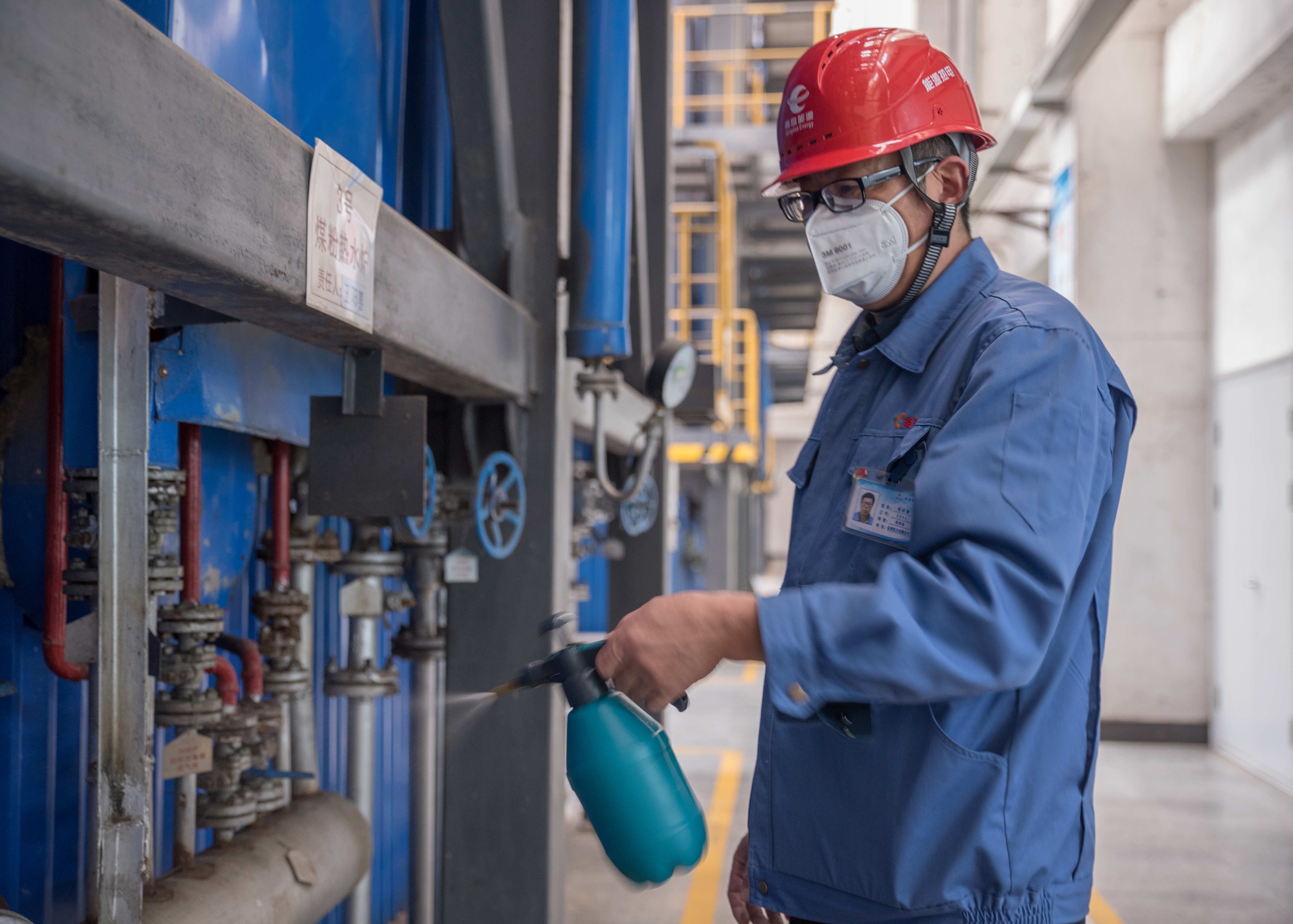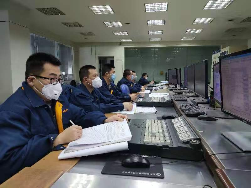4、安全生产突击队落实一线疫情防控工作。节后复工第一天,生产一线岗位员工就投入了紧张有序的生产工作中。安全生产队深入生产一线,检查、督导生产现场安全、设备运行情况及生产物资准备和疫情防控工作,并听取了值长疫情防控工作汇报,查看了当天职工体温测量登记表和岗位职工口罩佩戴,环境消毒等情况,保障安全生产,做到生产、防控两手抓,两手硬。