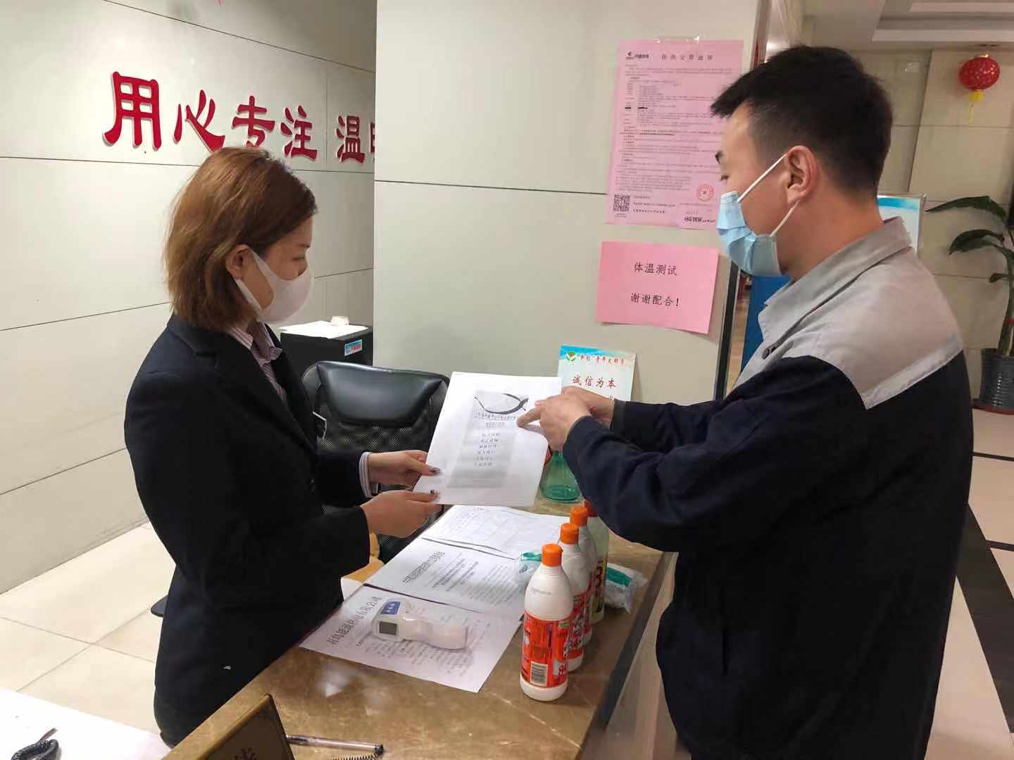 4.加强检查机制,提升完全保障。实行“一张门”进出管理,复工期间设专人提前到岗进行测温检查,每名职工须经检测、消毒、登记后方可进入办公区;要求干部职工必须佩戴口罩上班,除工作需要外,各办公室之间不得走访串门;办公区域按每日两次的频率对工作台、办公设备、内外门把手等区域进行消毒处理。通过各类检查和防护的实施,确保各项防护机制准确到位,从而复工人员的安全得到保障。