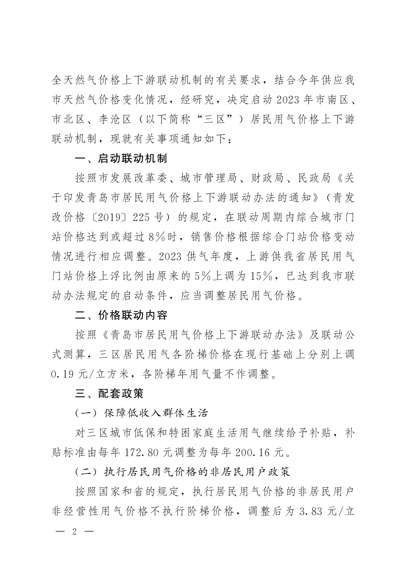 青发改价格〔2023〕194号《青岛市发展和改革委员会 青岛市城市管理局 青岛市财政局 青岛市民政局 关于启动三区居民用气价格上下游联动机制的通知》.pdf